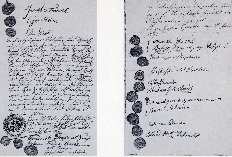 Schrift, das Siegel von Abraham Salomon (unten) zeigt